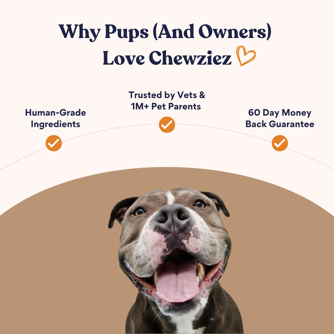 Yes. Every Chewziez formula is made with carefully selected, vet-approved ingredients and produced in the USA under strict cGMP standards. Always follow the recommended dosage based on your dog’s weight.