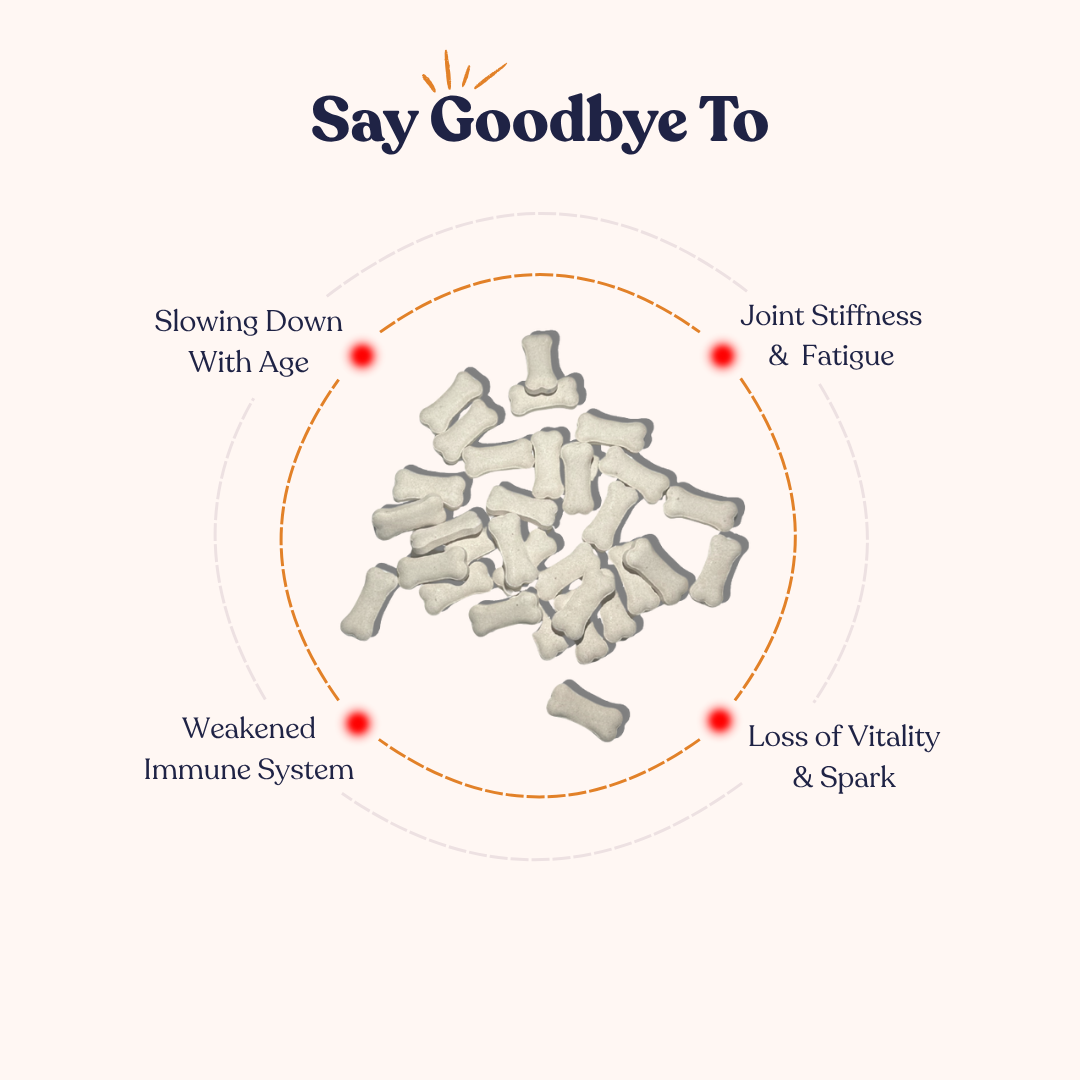 Even high-quality dog foods can lack certain vitamins, antioxidants, and omega fatty acids essential for long-term health. Over time, these gaps may lead to low energy, weak immunity, dull coat, or early signs of aging.