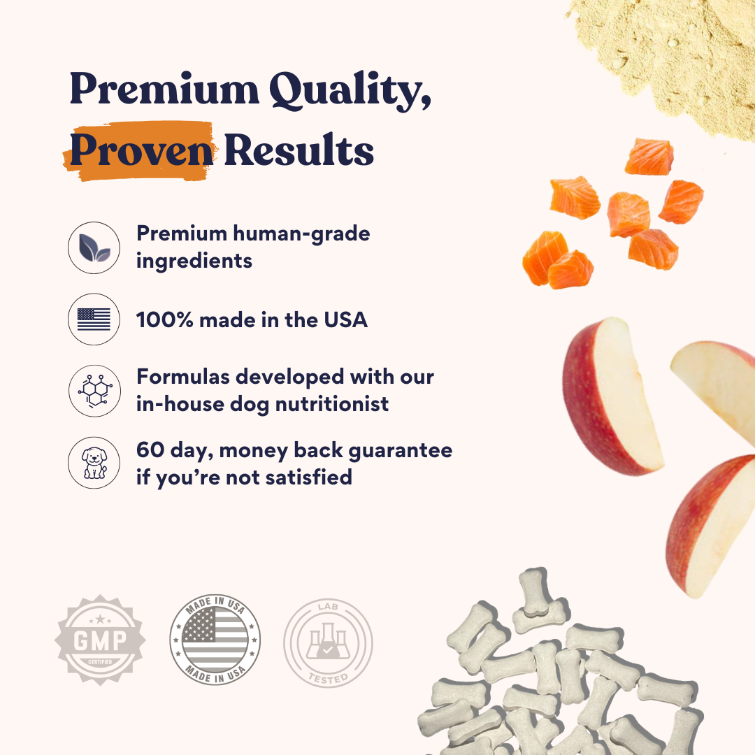 Most dog parents notice improvements within 2–4 weeks of consistent use. Every dog is different, but daily use helps the ingredients build up and deliver lasting benefits.