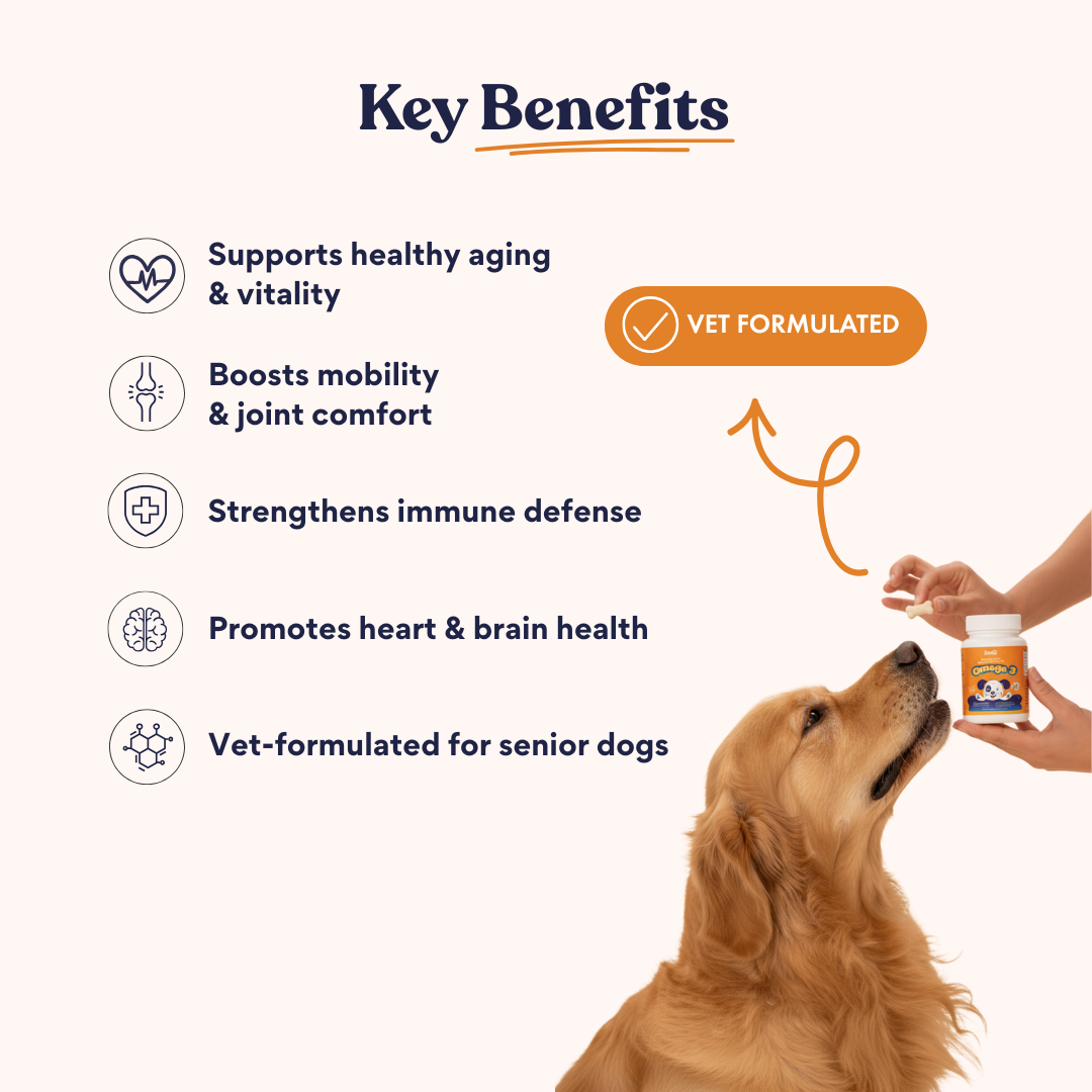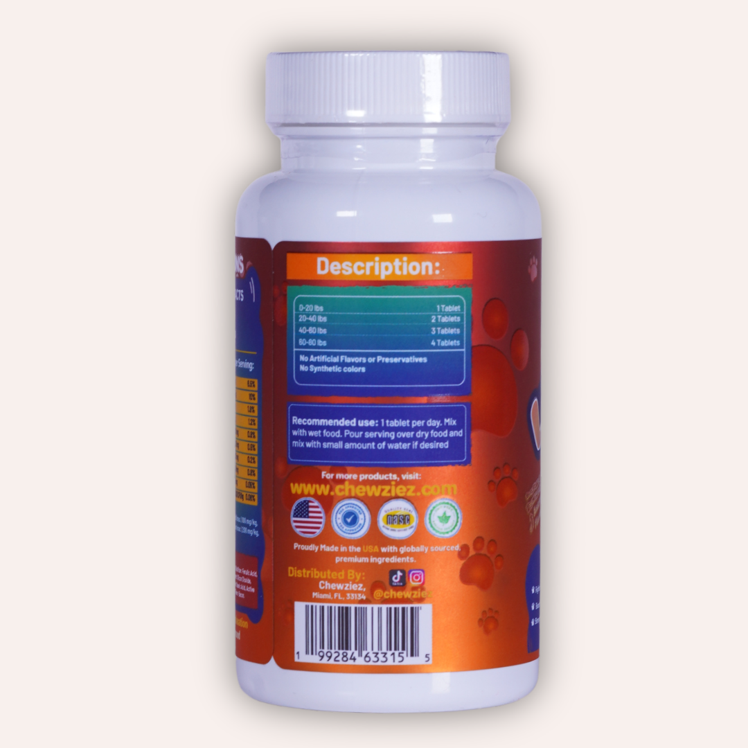 Crafted with research-based ingredients, our tablets are designed to support your dog's health, backed by science and recommended by pet health professionals.